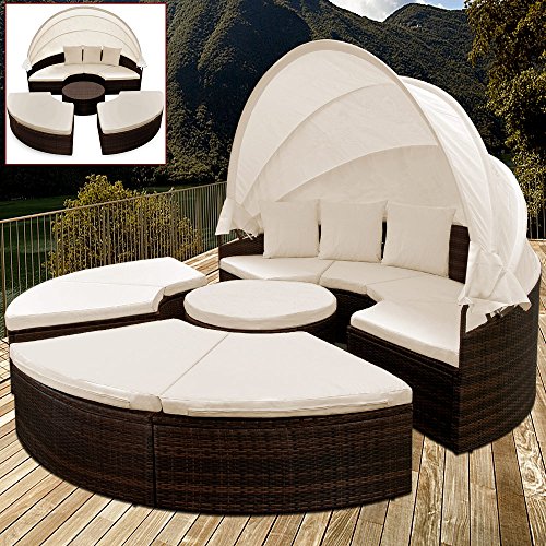 Poly Rattan Sonneninsel Ø 185cm Sonnenliege Gartenliege Gartenmöbel Lounge